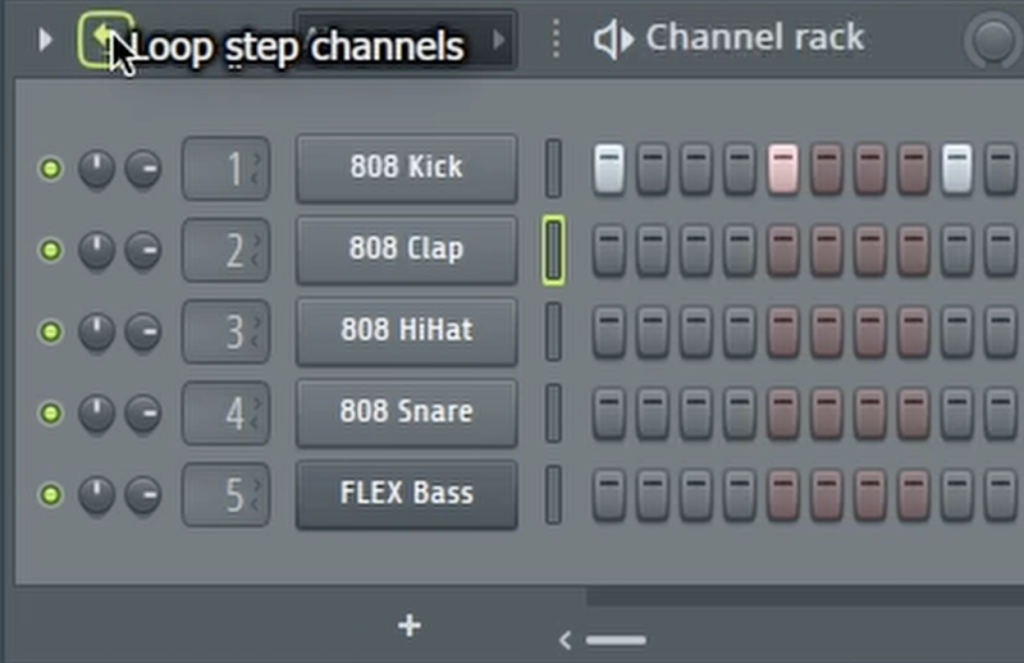 - At the top of the Channel Rack window, look for a small icon of a looping arrow. Click it.